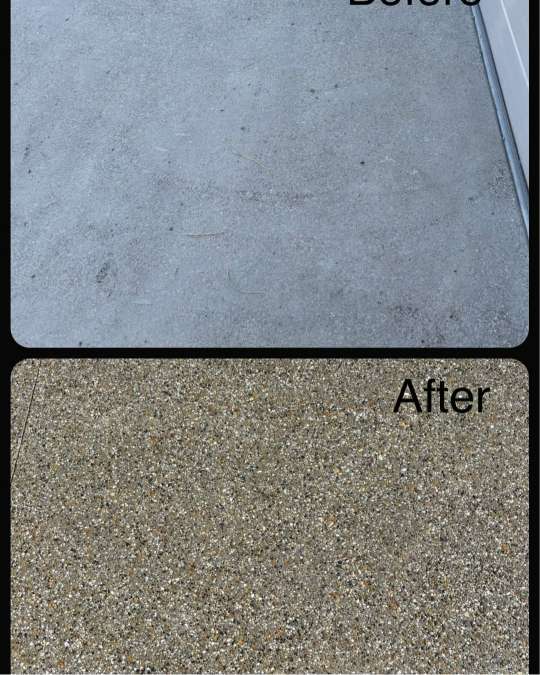 Our Exposed Aggregate sandblasting is a decorative form of concrete finish where we remove the top layer of cement paste to uncover the earthy beauty of pebbles, crushed stone, or other materials embedded within.